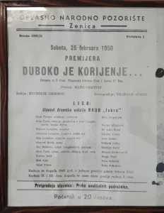 Zeničko pozorište osnovano je kao Oblasno narodno pozorište 1950. godine. Prvi premijerni naslov bila je predstava Duboko je korijenje, u režiji Evgenija Smirnova, kao predstava dramske sekcije Radničkog kulturno-umjetničkog društva „Iskra“. Prvi profesionalni glumac koji je zaposlen u tom pozorištu bio je Faruk Zadić.