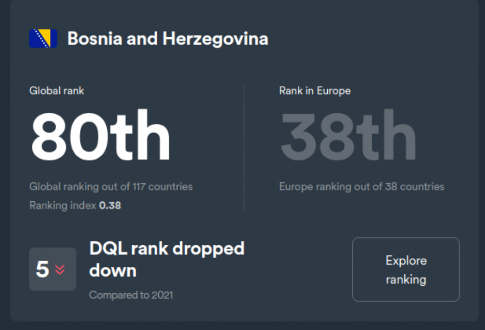 Svjetska studija o digitalnoj kvaliteti života kompanije Surfshark pokazuje da je Bosna i Hercegovina pala za pet mjesta u odnosu na prošlu godinu.