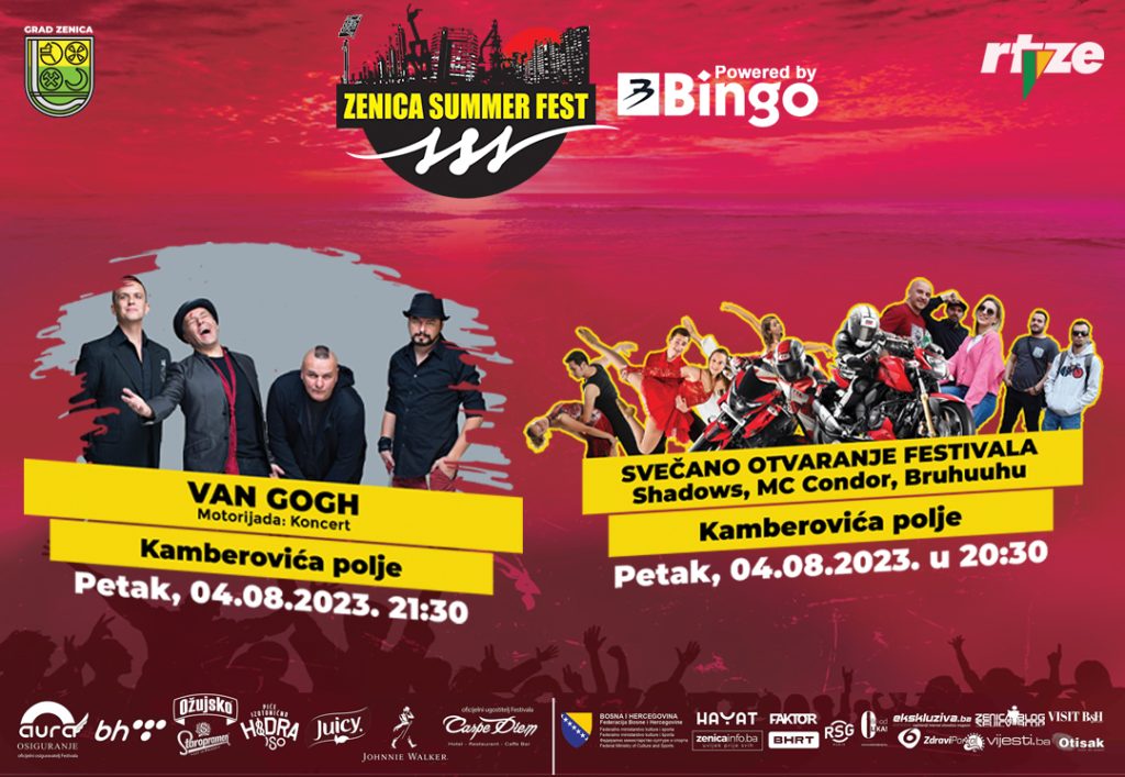 Poseban segment festivala, kao i uvijek, jeste ceremonija otvaranja, u kojoj se Organizator potrudi da pokaže sve najbolje što Zenica ima. Svečana ceremonija otvaranja Zenica Summer Festa održat će se na Kamberovića polju tradicionalnom Motorijadom, ali i koncertom popularnog Van Gogha. Publika će uživati u njihovim neprevaziđenim hitovima, vrućoj ljetnoj atmosferi, te žustroj energiji.