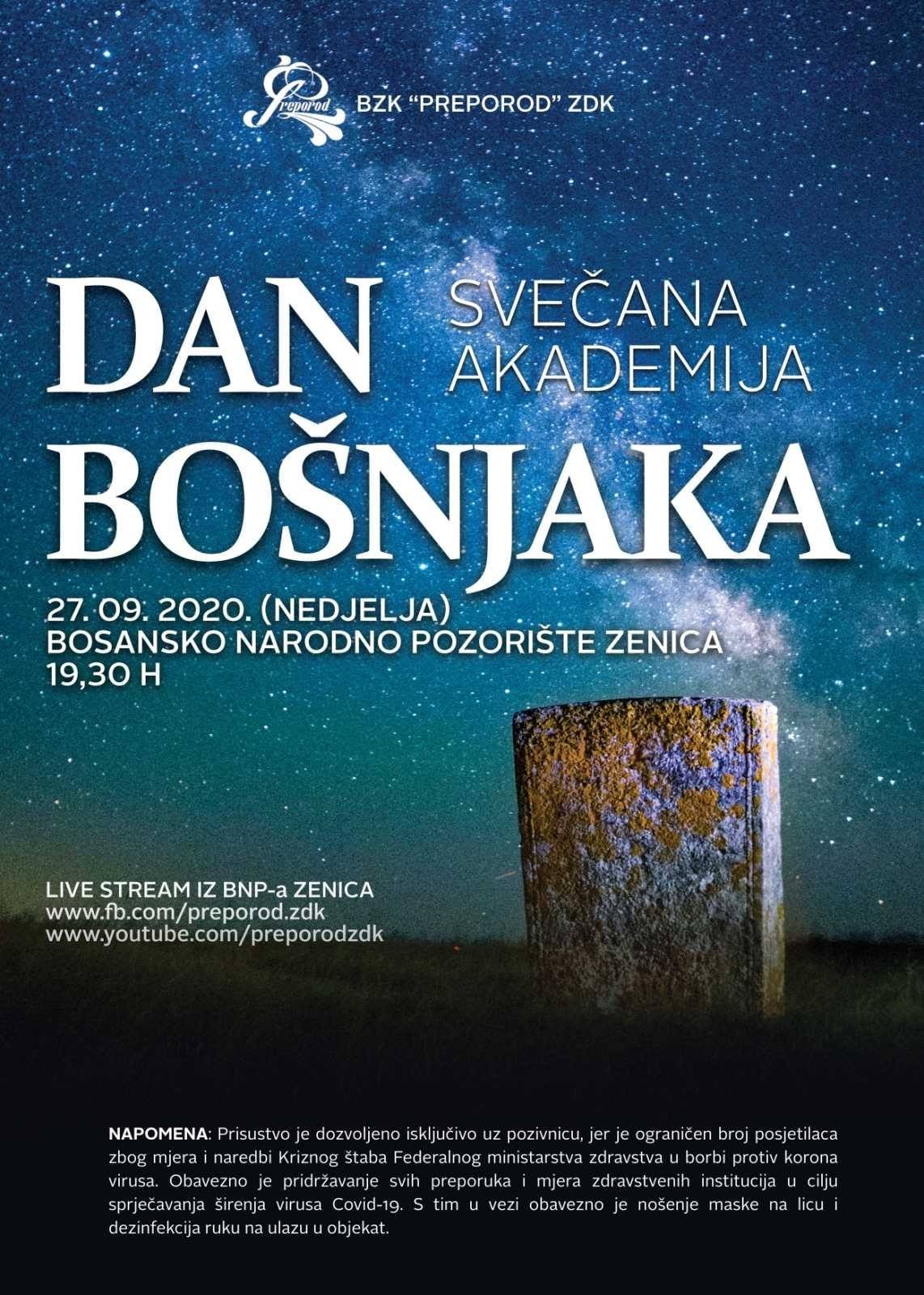 BZK Preporod ZDK: Svečana akademija – “Dan Bošnjaka” – Zbog većeg intesovanja javnosti za događaj, te zbog ograničenja broja publike, program sa velike scene Bosanskog narodnog pozorišta Zenica, možete pratiti UŽIVO u HD kvaliteti putem stranica BZK Preporod. Pored stranica BZK Preporod ZDK link za manifestaciju možete pronaći i na stranici Zenicablog pred sami početak.