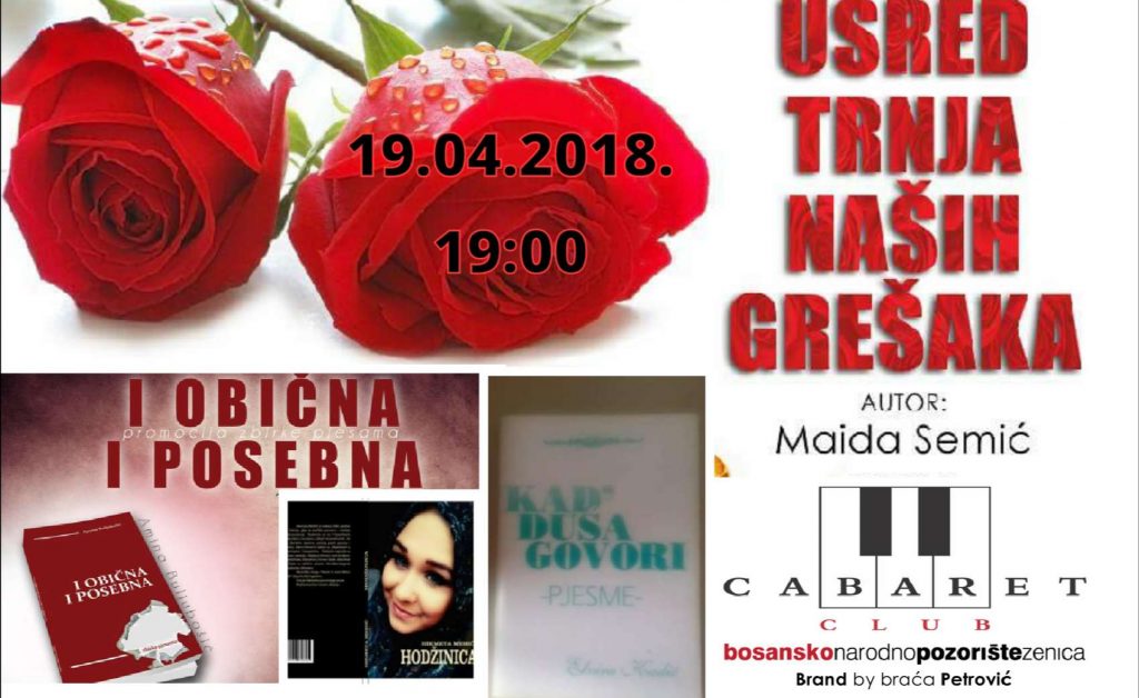 U četvrtak, 19.04.2018. sa početkom od 19:00, u organizaciji Cabaret cluba i braće Petrović, Ivana i Andrije te “Klubom spisateljica“ u okviru zeničkog Udruženja „Futura“ – organizuje književno veče pod nazivom “Sa spisateljicama na „ti“ u djelima autora“, a učestvuju: