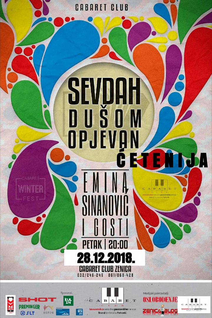 Cabaret Winter Fest: Ćetenija i večer sevdaha pred samu završnicu festivala – Sutra, 28.12.2018. u Cabaret clubu, u okviru četrnaeste noći jedinog zimskog festivala nekomercijalnog tipa u regionu, održat će se koncert “Sevdah dušom o’pjevan”. Svoj drugi solistički koncert imat će Emina Sinanović sa gostima. Naima, upravo svoj prvi solistički koncert Emina je održala upravo na ovom festivalu prošle godine i tu tradiciju nastavila i ove.