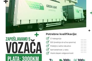 Zapošljavamo pet (5) vozača Potrebne kvalifikacije: – C1 kategorija – SSS (srednja stručna sprema) – Poželjno radno iskustvo –...