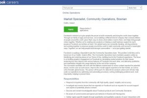 POSAO U FACEBOOKU: Market Specialist – Community Operations (Bosnian) – Kompanija Facebook je objavila oglas putem kojeg želi u Bosni i Hercegovini...