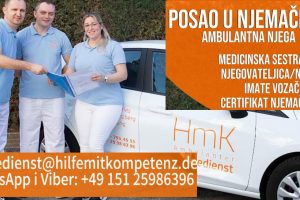Zaposli se – POSAO U NJEMAČKOJ – ambulantna njega zapošljavamo: – Medicinska sestra/tehničar – Njegovateljica/njegovatelj – Imate...