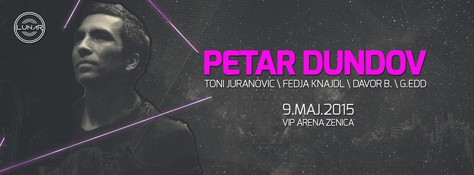 Lunar presents Petar DundovSubota 09.Maj.2015 VIP Arena Zenica Petar Dundov | Music Man | Zagreb Cro Juranovic | Makarska Cro DJ Fedja KnajdlDJ Davor B.G...