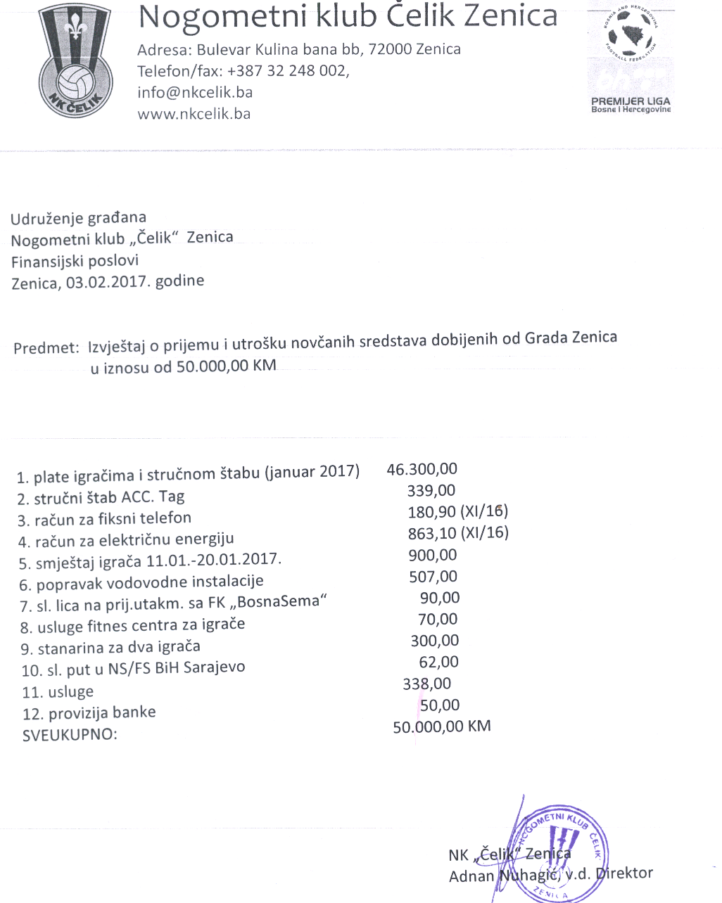 FOTO: Kako je NK Čelik utrošio 50.000 KM dobijenih od Gradske uprave Zenice – U skladu sa željom da promoviramo što transparentnije poslovanje našeg...