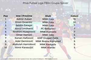 Kompletirano 6.kolo Prve futsal lige FBiH Sjever – Calp drugi, Drugari sedmi – Utakmicom u Živinicama između FC Bašigovci – MNK Bosna Kompred 7:2 iz 6...