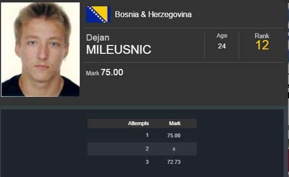 Mileusnić u kvalifikacijama EP bacio 75 metara – Nažalost, rekorder i najbolji mladi bh. bacač koplja, Dejan Mileusnić nije bacio daljinu dovoljnu za...