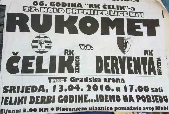 Srijeda: RK Čelik –RK Derventa (u 17 sati) U srijedu, 13.aprila 2016.godine, igraju se utakmice 27.kola Premijer rukometne lige BiH. Zenički RK Čelik je...