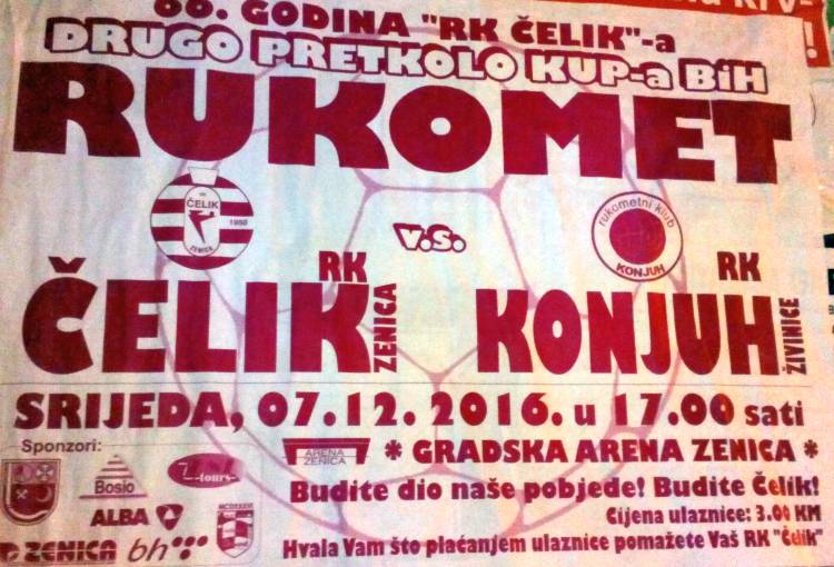 U Areni Kup utakmica Čelik – Konjuh (17h) – U srijedu 07. decembra 2016.godine u zeničkoj Areni igra se utakmica 2.pretkola Kupa BiH u kojoj se sastaju...