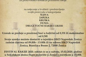 Organizacioni odbor Festivala rakija, HKD „Napredak“ i SPKD „Prosvjeta“ Zenica pozivaju proizvođače prirodnih rakija da se prijave za učešće na jedinstvenom...