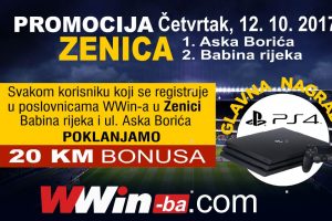 PROMOCIJA Wwin-a u Zenici – Četvrtak (12. 10.) u ZENICI – 20 KM bonusa i PS4 u poslovnicama WWin-Williamsa (Babina rijeka i u ul. Aska Borića)...