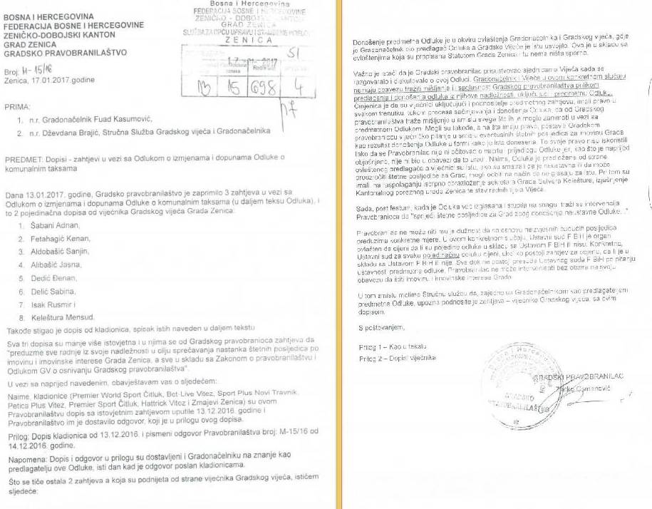 Pravobranilac: Ustavnost Odluke o komunalnim taksama u Zenici može ocijeniti samo Ustavni sud – Gradski pravobranilac Zenice uputio je vijećnike Gradskog...