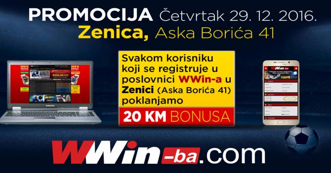 Promocija Wwin-a u Zenici, četvrtak 29.12. 2016. Bonusi za registrovane nove korisnike + pokloni Wwin-a Svakom igraču koji se registruje u poslovnici Wwin-a u...