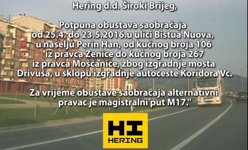 Važno: Jednomjesečna obustava saobraćaja – Preduzeće Hering nastavlja radove na koridoru Vc – s tim u vezi doći će do značajnih promjena u režimu...
