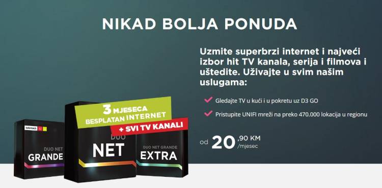 Telemach: novi obogaćeni DUO GRANDE paketi sa više kanala – Poštovani korisnici, obavještavamo vas da od 1.2.2017. godine unapređujemo Telemach ponudu...