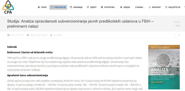 Studija: Analiza opravdanosti subvencioniranja javnih predškolskih ustanova u FBiH – preliminarni nalazi Raširenost i korist od državnih vrtića 76% općina u...
