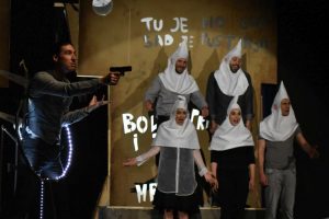 FOTO: Pretposljednje takmičarske večeri 17. festivala bh. drame izvedena SARTR-ova predstava „Jedvanosimsoboakalomistobo” Osmog dana 17. festivala...