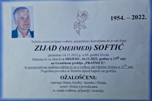 U ponedjeljak, 14. novembra, u Zenici preminuo je Zijad Softić, dugogodišnji društveni, kulturni i javni radnik. Rođen je u Zenici 1954. godine, školovao se u...