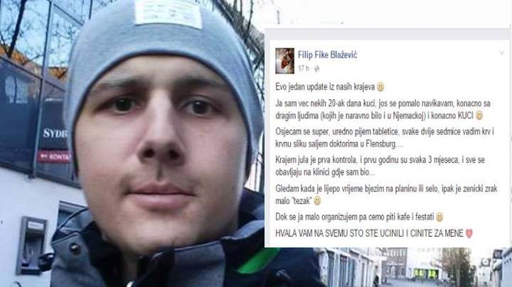 Zeničanin Filip Blažević putem svog profila na društvenoj mreži Facebook statusom je obavijestio da oporavak teče željenim tokom i da se u svom rodnom gradu...