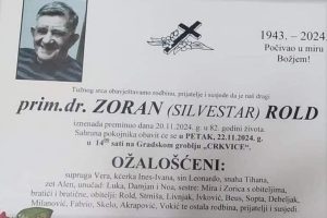 Primarijus doktor Zoran Rold, dugogodišnji ljekar Kantonalne bolnice Zenica i saradnik niza zdravstvenih ustanova u srednjoj Bosni, preminuo je u 82. godini...