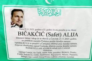Dženaza i ukop Alije (Safeta) Bičakčića, profesora i bivšeg direktora Osnovne Muzičke škole u Zenici, biće danas poslijepodne u Zenici. On je preminuo jučer...