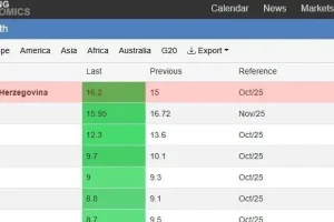 Prema podacima Trading Economicsa, jednog od vodećih svjetskih platformi za ekonomske i finansijske podatke u Bosni i Hercegovini su procentualno najviše...