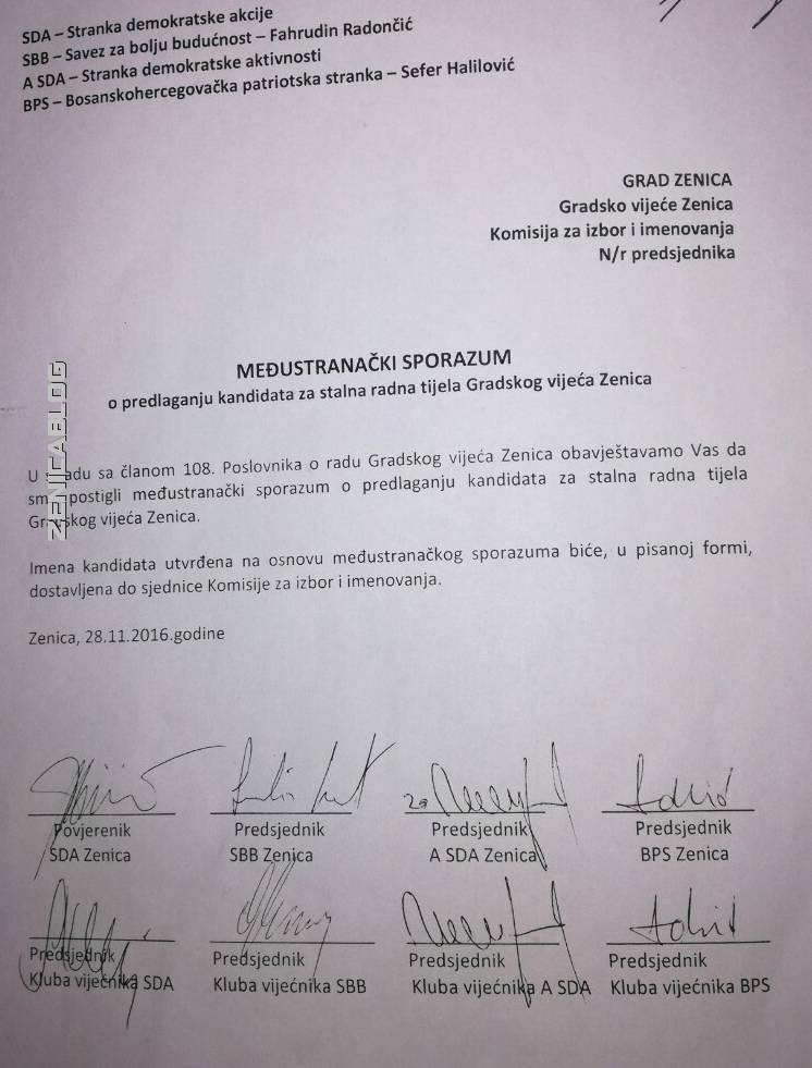 Potpisan sporazum: SDA, SBB, A-SDA i BPS na pragu koalicije u Zenici – Predsjednici klubova vijećnika SDA, SBB, A-SDA i BPS-a, predsjednici SBB-a, A-SDA...