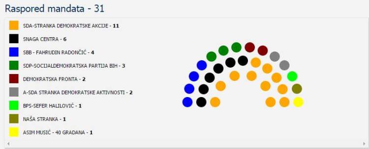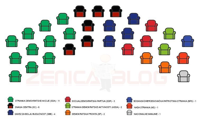 Grafika: pogledajte raspored stranaka i pročitajte imena (vjerovatnih) vijećnika budućeg Gradskog vijeća Zenice – Prema podacima Centralne izborne...