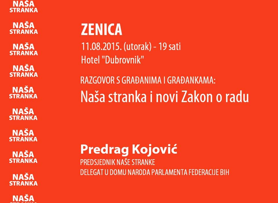 Poštovane/i, pozivamo vas da prisustvujete tribinu, koju organizuje GO NS Zenica, na temu “Naša stranka i novi Zakon o radu”. Gost je Predrag...