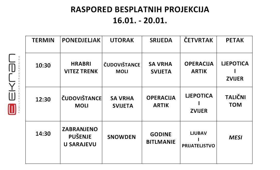 Jedinstvena akcija se nastavlja: besplatne projekcije za Zeničane u toplom multipleksu Ekran- Dragi sugrađani sklonite se iz hladnih stanova. Zagrijte se u...