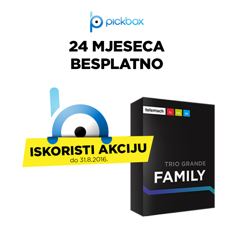 Pickbox 24 mjeseca besplatno u Telemach Trio Grande Family paketima – PICKBOX AKCIJA – Ukoliko do 31.8. postaneš novi korisnik Trio Grande Family...