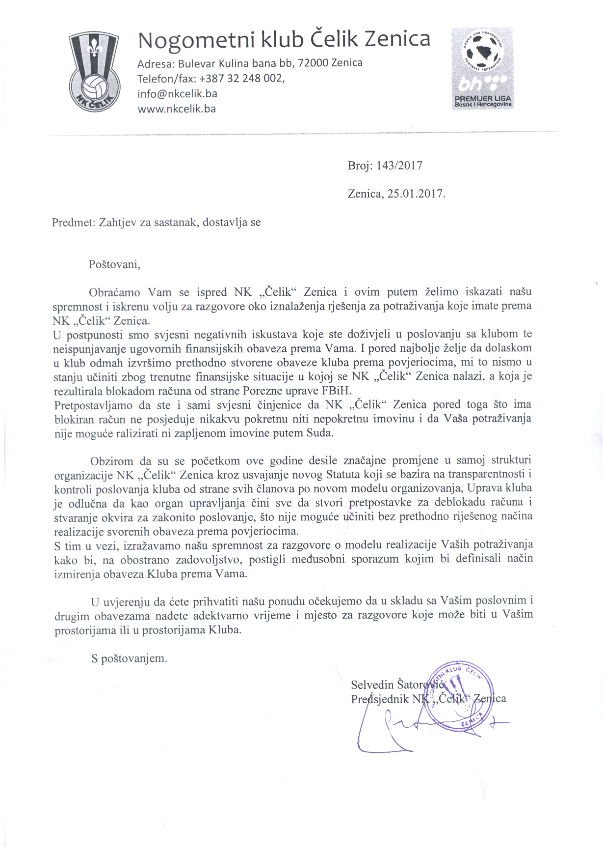 Javni poziv svima koji imaju potraživanja prema NK Čelik: izađite nam u susret i dogovorimo se! – Kako je javnost i upoznata, 24. januara je u Parlamentu...