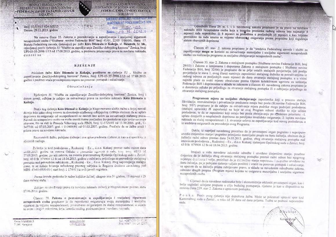 Zahtjev za priznavanje prava na novčanu naknadu bivšim radnicima Metalno d.d. Zenica u stečaju – Poštovani, Nakon što je sredinom desetog mjeseca prošle...