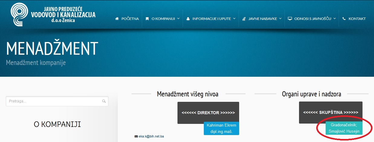 Na web stranici ViK-a još uvijek predsjednik Skupštine prije devet mjeseci umrli gradonačelnik Zenice Husejin Smajlović? – Javna preduzeća, institucije...