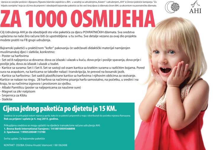 Poštovani/e, Udruženje za afirmaciju humanih ideja (AHI) u saradnji sa Upravom za vanjske poslove i dijasporu Rijaseta Islamske zajednice u BiH, i udruženjem...