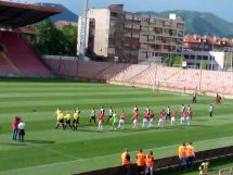 -13.minut, Karić ostavlja loptu Salčinoviću, ovaj šutira po zemlji, ali je golman Fejzić na mjestu.