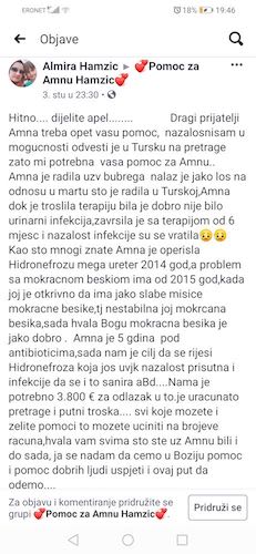 ”Vjerujemo da će se veliki broj posjetilaca utakmice sa Maglajem pridružiti ovoj humanitarnoj akciji za liječenje djevojčice Amne Hamzić. Pored kupovine ulaznica, biće obezbijedjeno da onaj ko želi donira i dodatna sredstva za liječenje male Amne”, ističe Sanel Hasanović