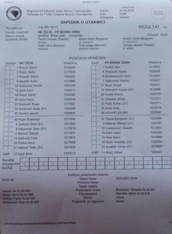 Žuti kartoni: Hasanović (Čelik), Oglečevac (Bosna Sema).