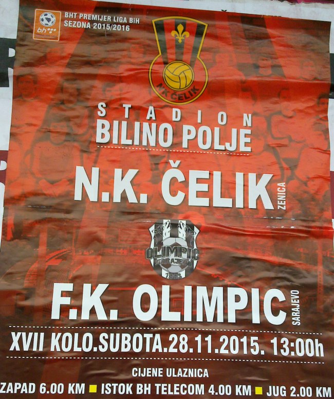 Utakmica NK Čelik – FK Olimpic na rasporedu je u subotu 28.11. 2015.godine u 13 sati na stadionu Bilino polje u Zenici.