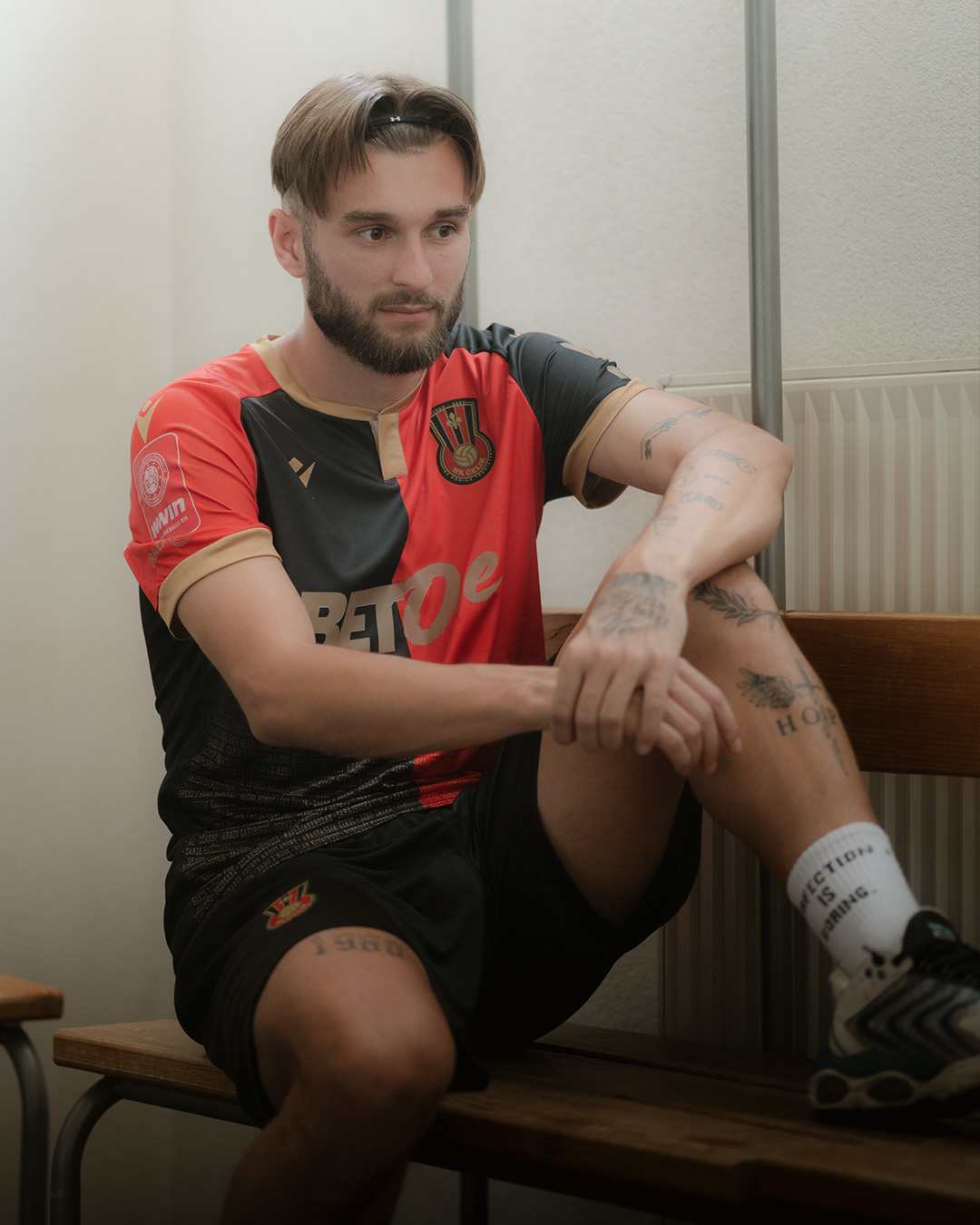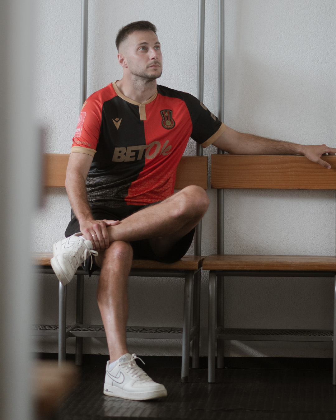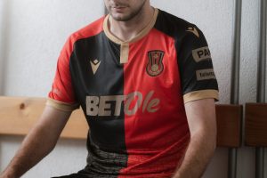 Podijeljeni dizajn, zlatni detalji i tekstualna podloga daju dresu identitet i prepoznatljivost.