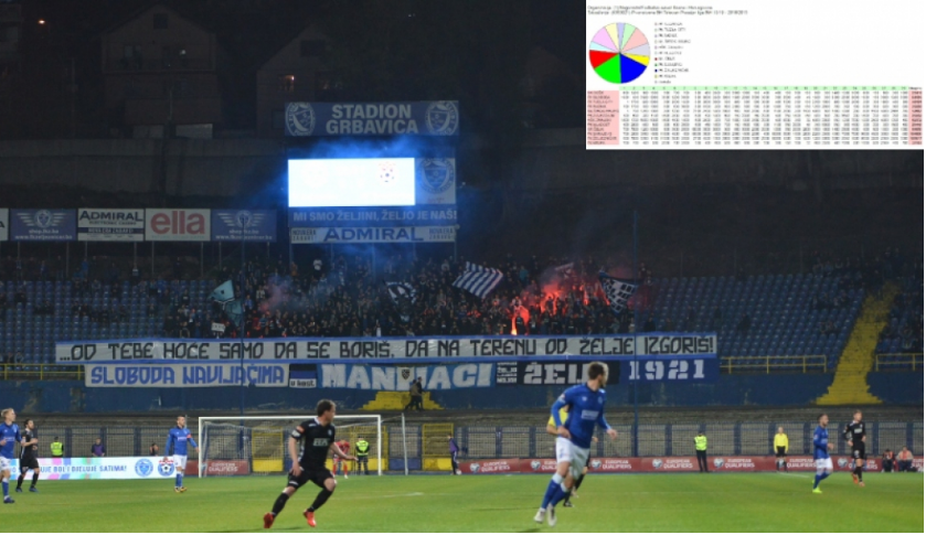 Plave je na Grbavici u 15 mečeva ove sezone gledalo ukupno 62.517 navijača, što je u prosjeku 4.167 navijača po susretu.