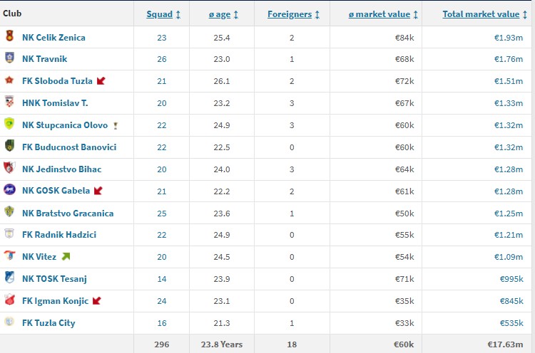 Isto tako, Čelik trenutno ima najskuplju ekipu na papiru. Kada bismo računali i dolazak Emmanuel King Sieha, koji još nije zaveden u Transfermarkt sistem, Čelik vrijedi nešto više od dva miliona eura.