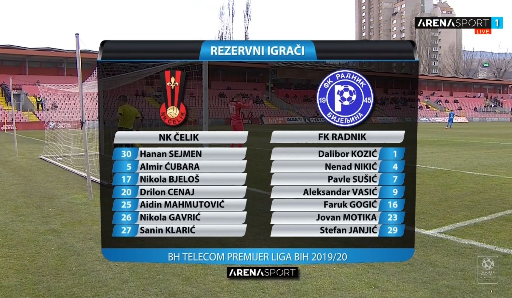 NK ČELIK – FK RADNIK 1:1 ; Stadion: „Bilino polje” u Zenici; Početak u 14:30 sati; Gledalaca oko 800