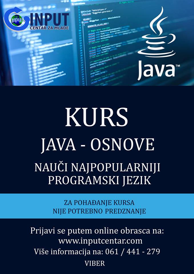 Centar za mlade INPUT – kurs osnove Jave – prijave do 24. februara – Centar za mlade INPUT kroz svoj dugogodišnji rad i edukaciju iz oblsti IT i uspješno relizovane kurseve i edukacije kroz koje je prošlo oko 14 000 djece, mladih i ostalih zaintersovanih pokreće nešto novo u Gradu Zenici iz oblasti IT edukacije – kurs osnove Jave.