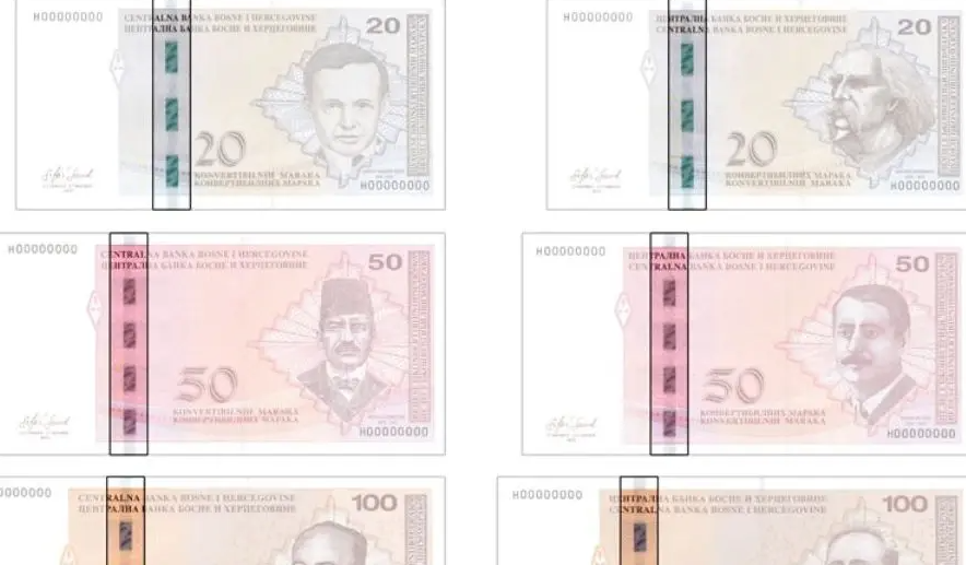 Novčanice koje se povlače iz opticaja nemaju ovo zaštitno obilježje, te se na osnovu te lako uočljive vizuelne razlike može lako utvrditi da li se radi o izdanju koje će ostati u opticaju, ili o izdanju koje će prestati biti zakonsko sredstvo plaćanja sa 31. decembrom 2024. godine – naveli su iz Centralne banke BiH.