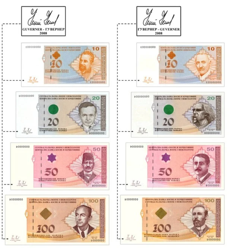 Počev od 1. januara 2025. godine navedena izdanja novčanica KM prestaju biti zakonsko sredstvo plaćanja i ne mogu se primati u prometu za podmirivanje bilo kakvih obaveza, te podliježu isključivo procesu zamjene kao novčanice povučene iz opticaja. Zamjenu novčanica, nakon što prestanu biti zakonsko sredstvo plaćanja, u 2025. godini će obavljati komercijalne banke u Bosni i Hercegovini. Nakon isteka roka zamjene u komercijalnim bankama zamjenu će obavljati Centralna banka BiH u roku u od 10 godina, počev od 1. januara 2026. godine, zaključno sa 31. decembrom 2035. godine”, objasnili su iz Centralne banke BiH.