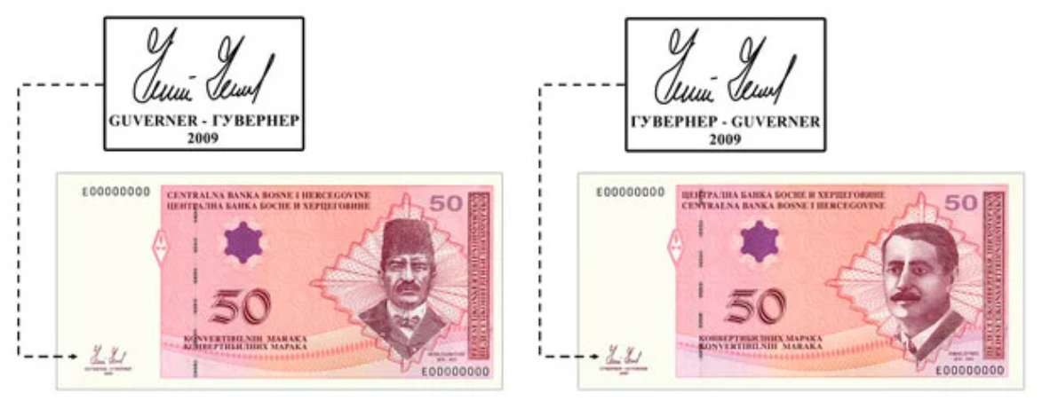 “Novčanice apoena 10 KM, 20 KM, 50 KM i 100 KM koja će ostati u opticaju imaju uspravnu mikrooptičku zaštitnu nit ‘Motion™’. Novčanice koje se povlače iz opticaja nemaju ovo zaštitno obilježje, te se na osnovu te lako uočljive vizuelne razlike može lako utvrditi da li se radi o izdanju koje će ostati u opticaju, ili o izdanju koje će prestati biti zakonsko sredstvo plaćanja sa 31.12.2024. godine. Novčanice izdanja koje ostaju u opticaju nakon 31.12.2024. godine mogu se vidjeti na linku Novčanice KM koje ostaju u opticaju. Povlačenjem novčanica apoena 10 KM, 20 KM, 50 KM i 100 KM puštenih u opticaj u periodu od 1998. do 2009. godine osigurat će povećanje nivoa kvaliteta novčanica u opticaju, jer će se novčanice koje se povlače iz opticaja zamjenjivati sa novim novčanicama visoke kvalitete. U opticaju će ostati samo novčanice koje posjeduju identičnu i unaprijeđenu zaštitu od krivotvorenja, što će olakšati provjeru autentičnosti za javnost, osoba koje obavljaju ručnu obradu novčanica, kao i na uređajima za prijem i obradu novčanica”, zaključili su iz Centralne banke BiH.