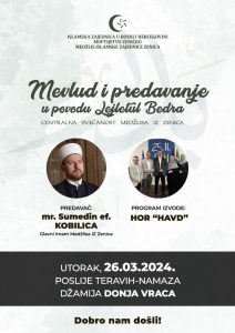 Program izvodi hor „Havd“, a predavanje će kazivati glavni imam Medžlisa IZ Zenica mr. Sumedin ef. Kobilica.